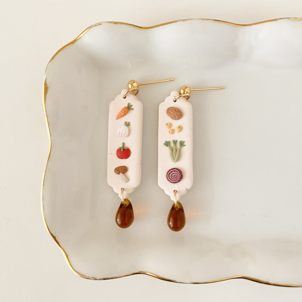 These lovely polymer clay earrings are handcrafted with the utmost care and intention from start to finish, making each pair beautifully unique from one to the next. Surprisingly lightweight and easy to wear for even the most sensitive ears.