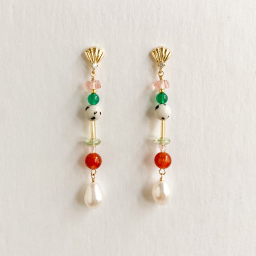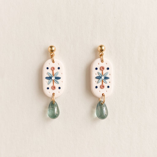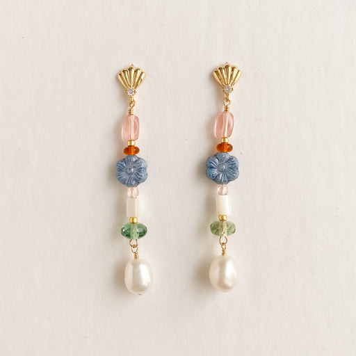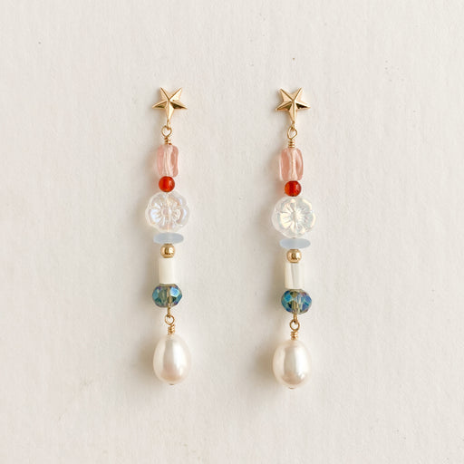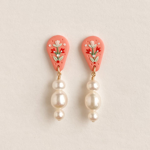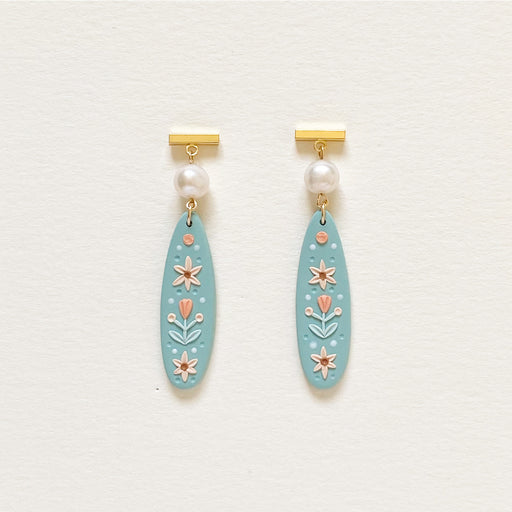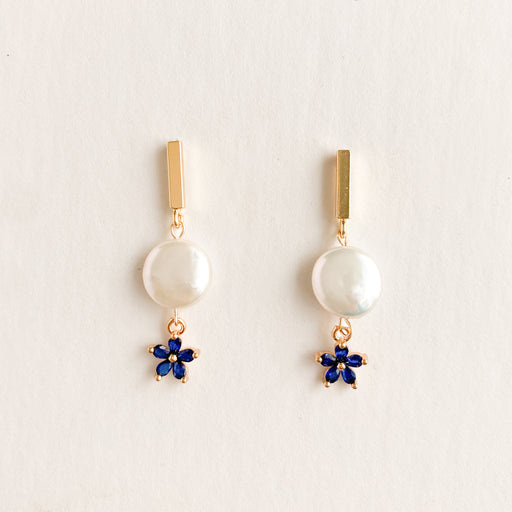 PRE-ORDER | Navy Daisies - Pearl Dangles
