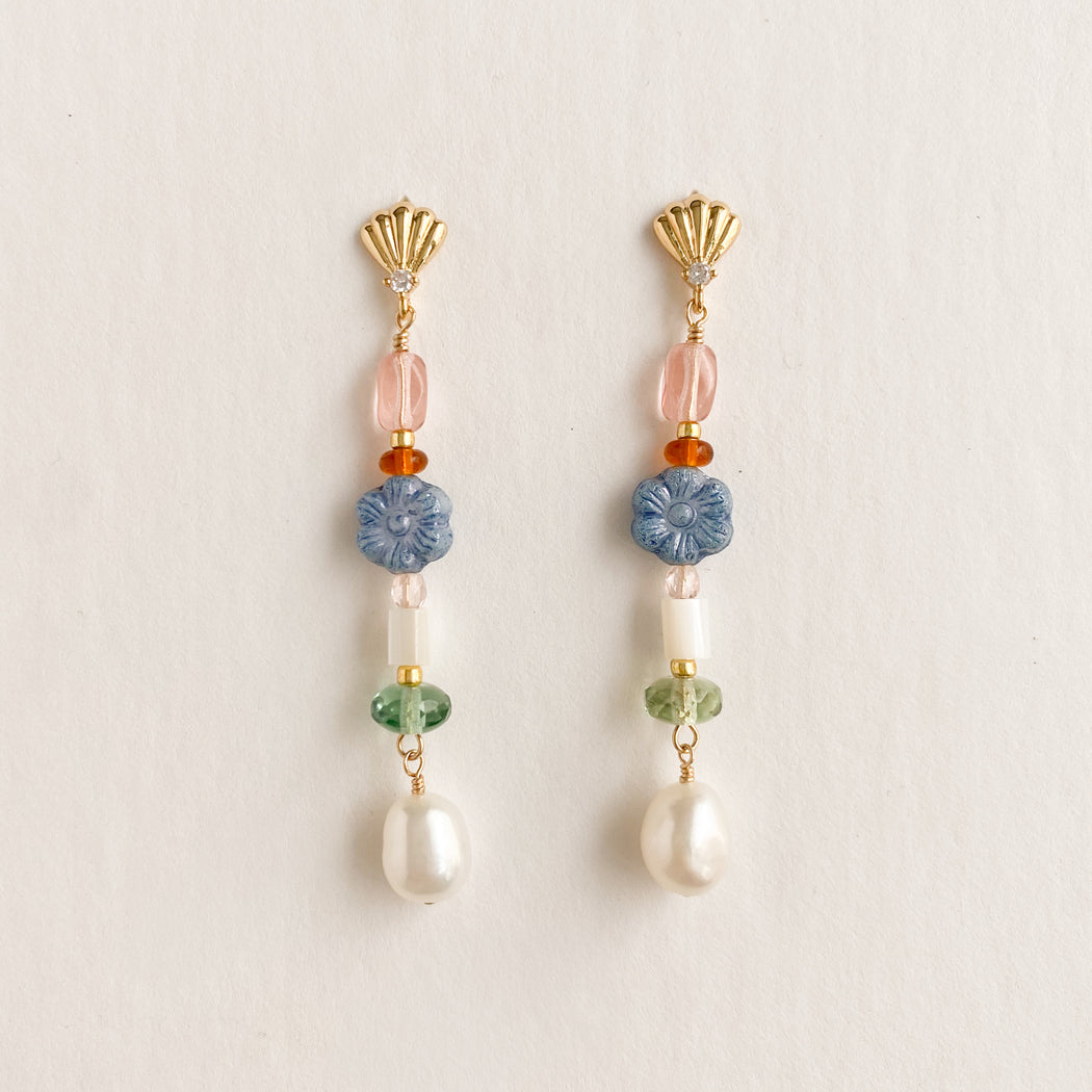 These lovely earrings are created with most beautiful mix of vintage glass beads, gemstones and freshwater pearls. Elegant yet bold, they are perfectly paired for any outfit from casual to fancy.