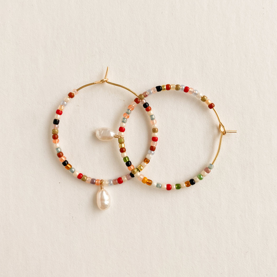 These lovely earrings are created with most beautiful mix of glass seed beads and freshwater pearls. Elegant yet bold, they are perfectly paired for any outfit from casual to fancy.