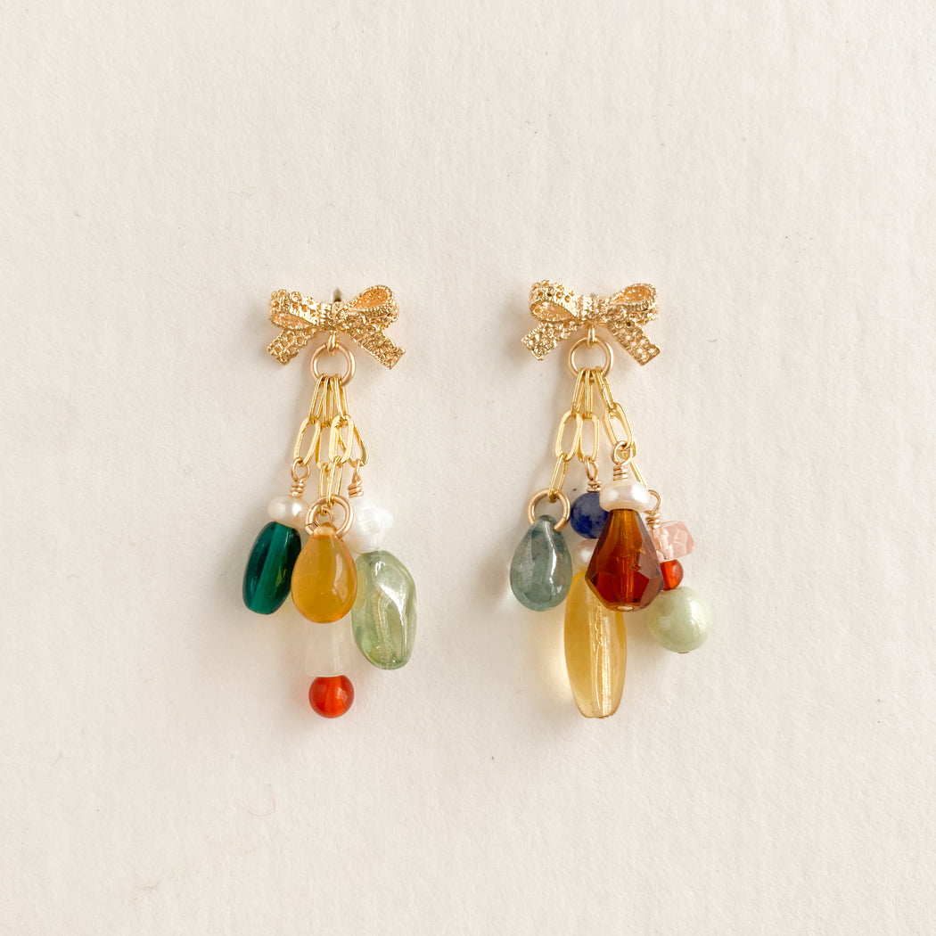 • 18k gold filled findings + Gold Plated Bow + silicone backs
