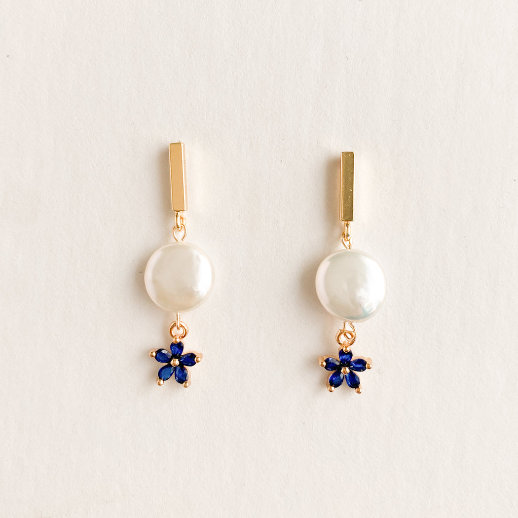 PRE-ORDER | Navy Daisies - Pearl Dangles
