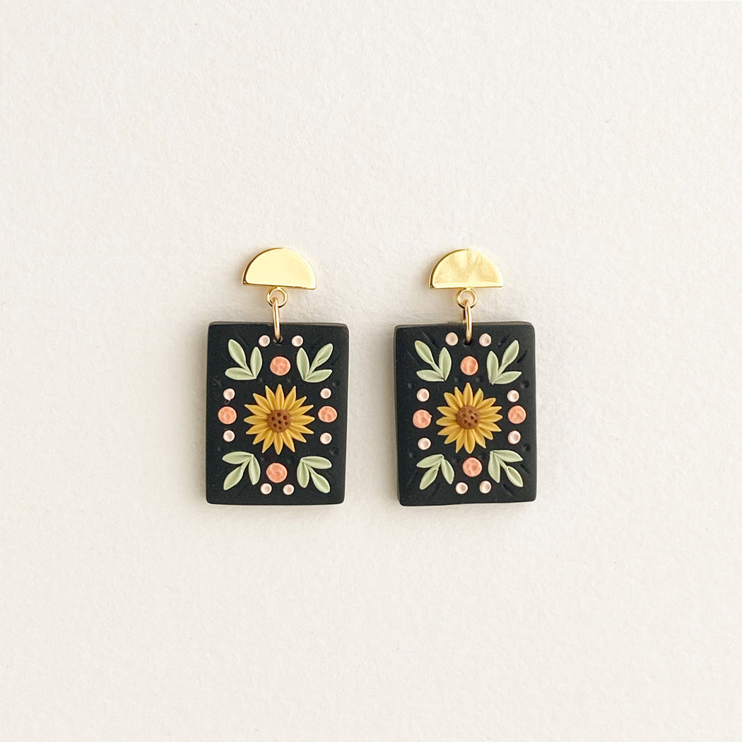Sunflower Black Tile Dangles