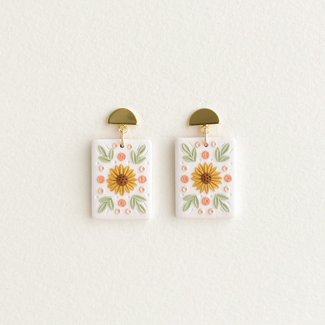 These lovely polymer clay earrings are handcrafted with the utmost care and intention from start to finish, making each pair beautifully unique from one to the next. Surprisingly lightweight and easy to wear for even the most sensitive ears.