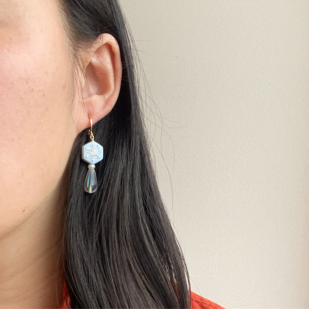 These lovely polymer clay earrings are handcrafted with the utmost care and intention from start to finish, making each pair beautifully unique from one to the next. Surprisingly lightweight and easy to wear for even the most sensitive ears.