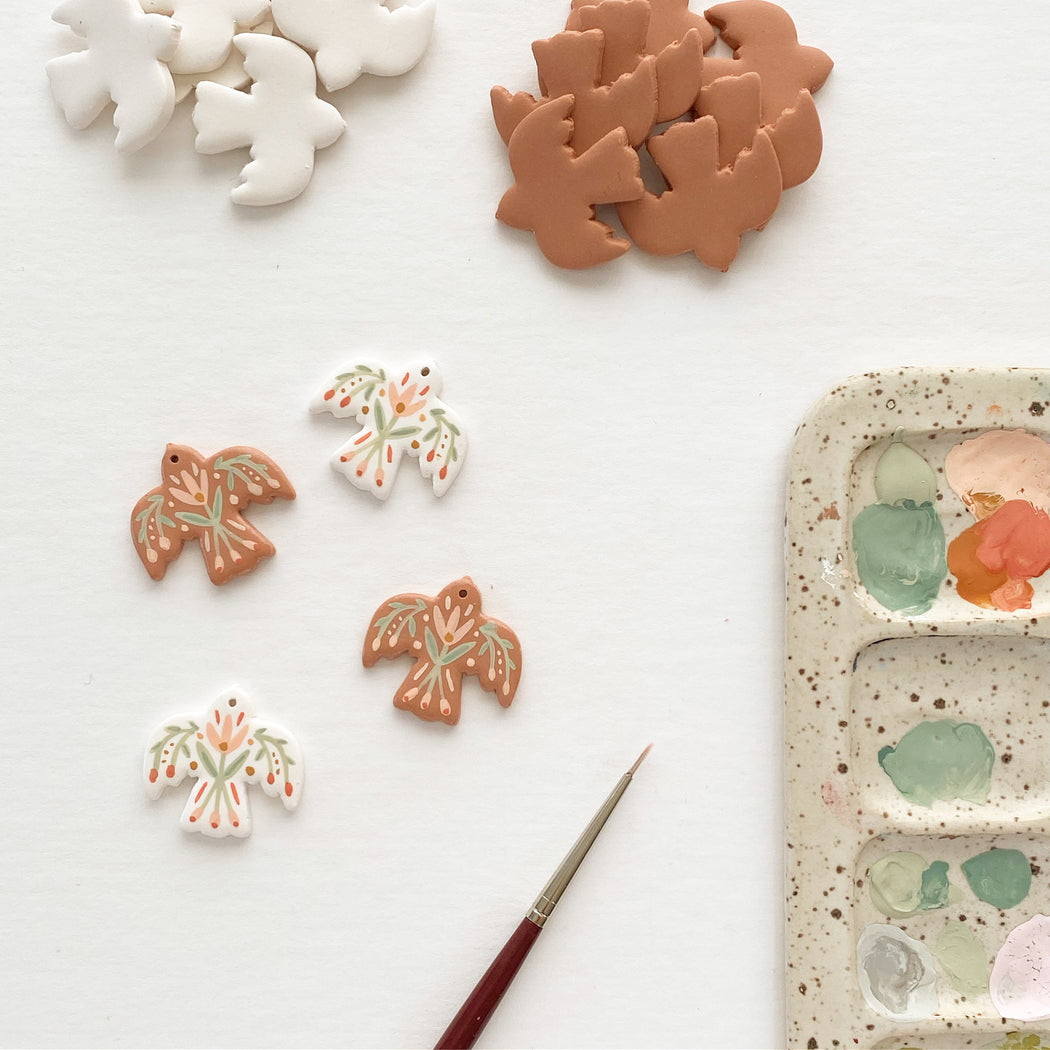 These lovely polymer clay earrings are handcrafted with the utmost care and intention from start to finish, making each pair beautifully unique from one to the next. Surprisingly lightweight and easy to wear for even the most sensitive ears.